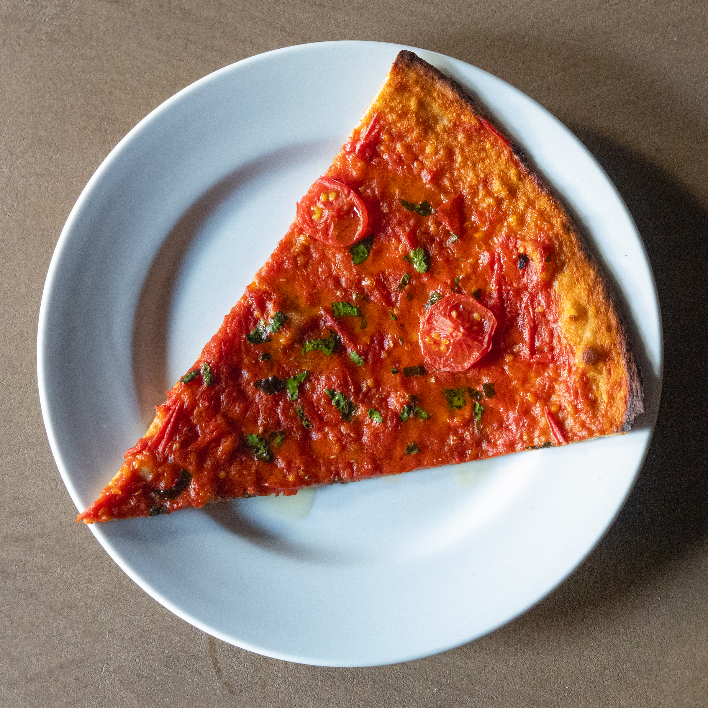 ピッツアには、品種改良される前に近い小麦の祖先ともいうべき北海道産のスペルト小麦の全粒粉を100% 使用しています。口当たりがいいように、かなりクリスピーな生地に仕上げ、軽い食感で頂けるように工夫しています。スペルト小麦は、通常の小麦に比べグルテンが少ない小麦として近年注目されています。